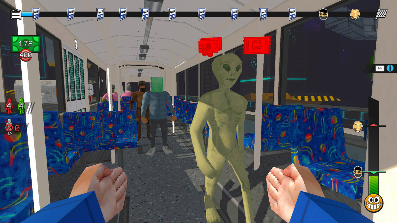 Станьте кондуктором троллейбуса в этой безбашенной игре от первого лица! Проверяйте, нет ли в салоне зайцев и других смутьянов. Выдавайте билеты и наводите порядок при помощи кулаков: от этой безумной поездки можно ожидать чего угодно.