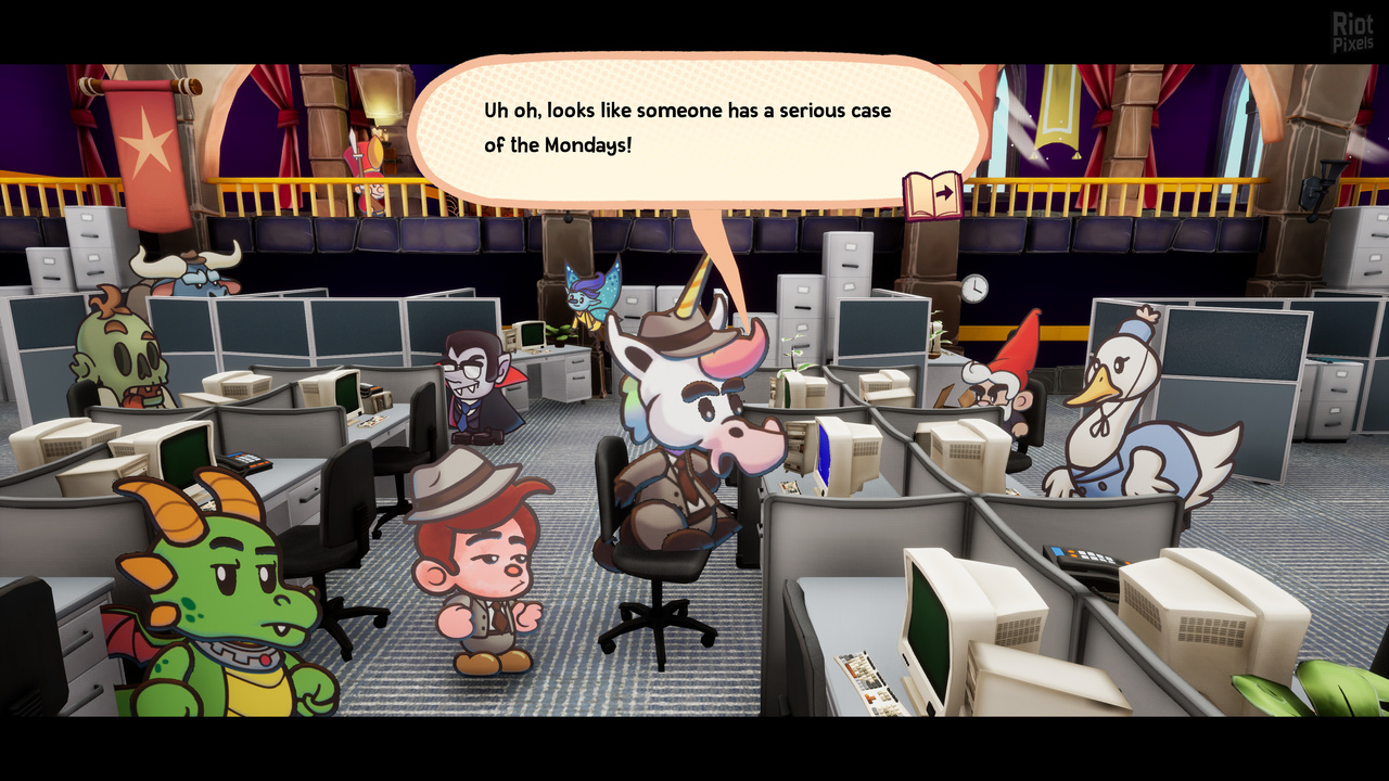 Когда Флинт Баклер, классический искатель приключений из сказок, штурмует замок своего заклятого драконьего врага Тиндер, он обнаруживает, что некогда устрашающая крепость превратилась в... корпоративный офис? Злодейки-дракона нигде нет, а её замок забит бездумными работягами, потягивающими кофе и заполняющими отчёты. Что же произошло?Оказалось, что книги сказок - это неосвоенный рынок, полный ценных ресурсов, дешёвой рабочей силы и потенциальной прибыли: естественно, конгломерат реального мира Ever After Inc. нашёл способ вмешаться! Замок Тиндер стал их новой штаб-квартирой, и теперь Ever After Inc. намерена захватить все истории, до которых дотянется. Не имея другого выбора, кроме как устроиться к ним на работу, Флинт Баклер вынужден объединиться со своим бывшим врагом Тиндер, чтобы подняться по корпоративной лестнице и уничтожить Ever After Inc. изнутри!