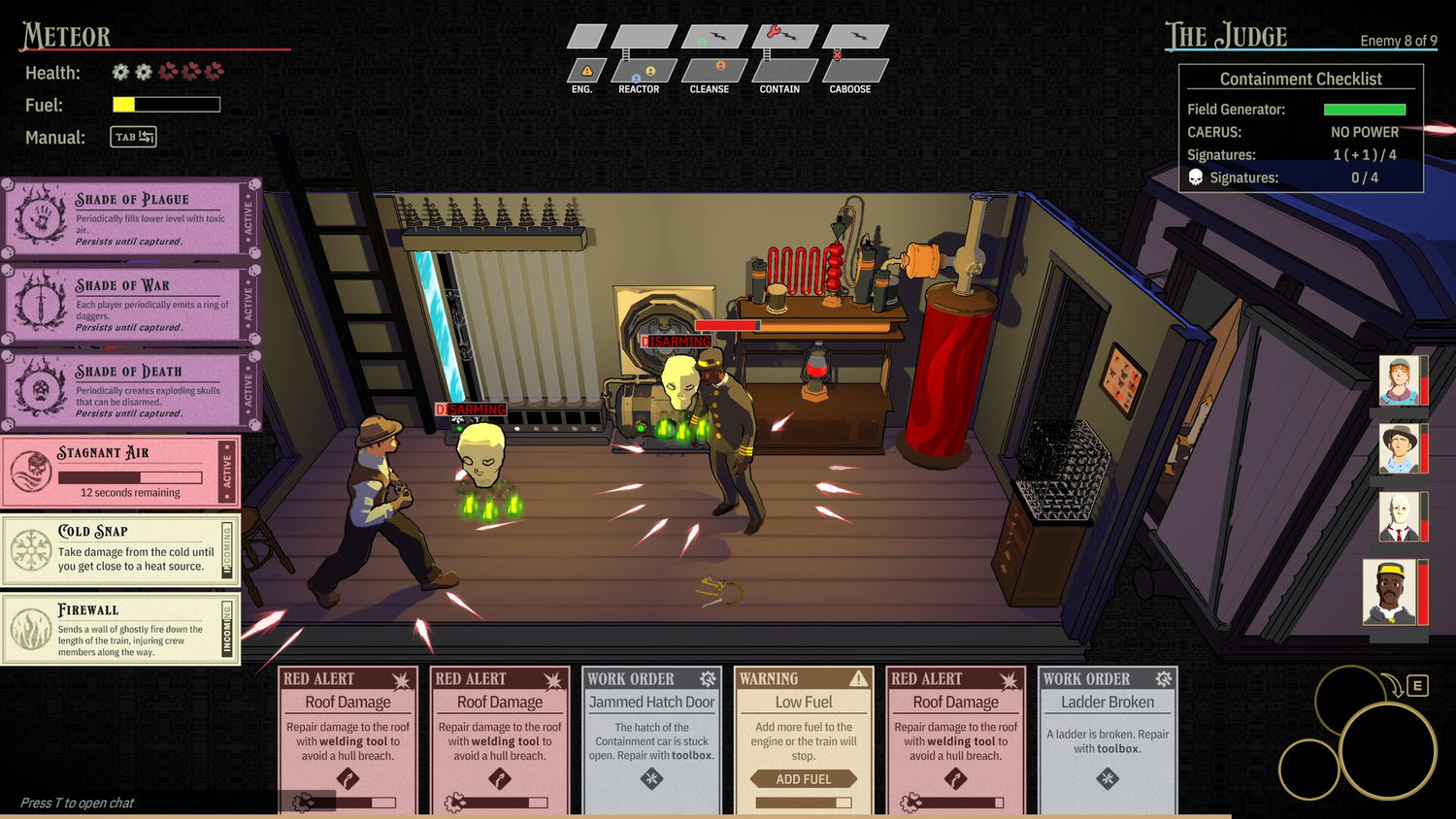 Rhyolite перенесёт вашу команду из четырёх игроков в мир, где каждый элемент поезда сломан, враги атакуют без жалости, а головоломки управления ресурсами и распределением внимания меняются с каждым шагом. Ваша задача — ловить призраков на стимпанк-железной дороге, полной привидений.