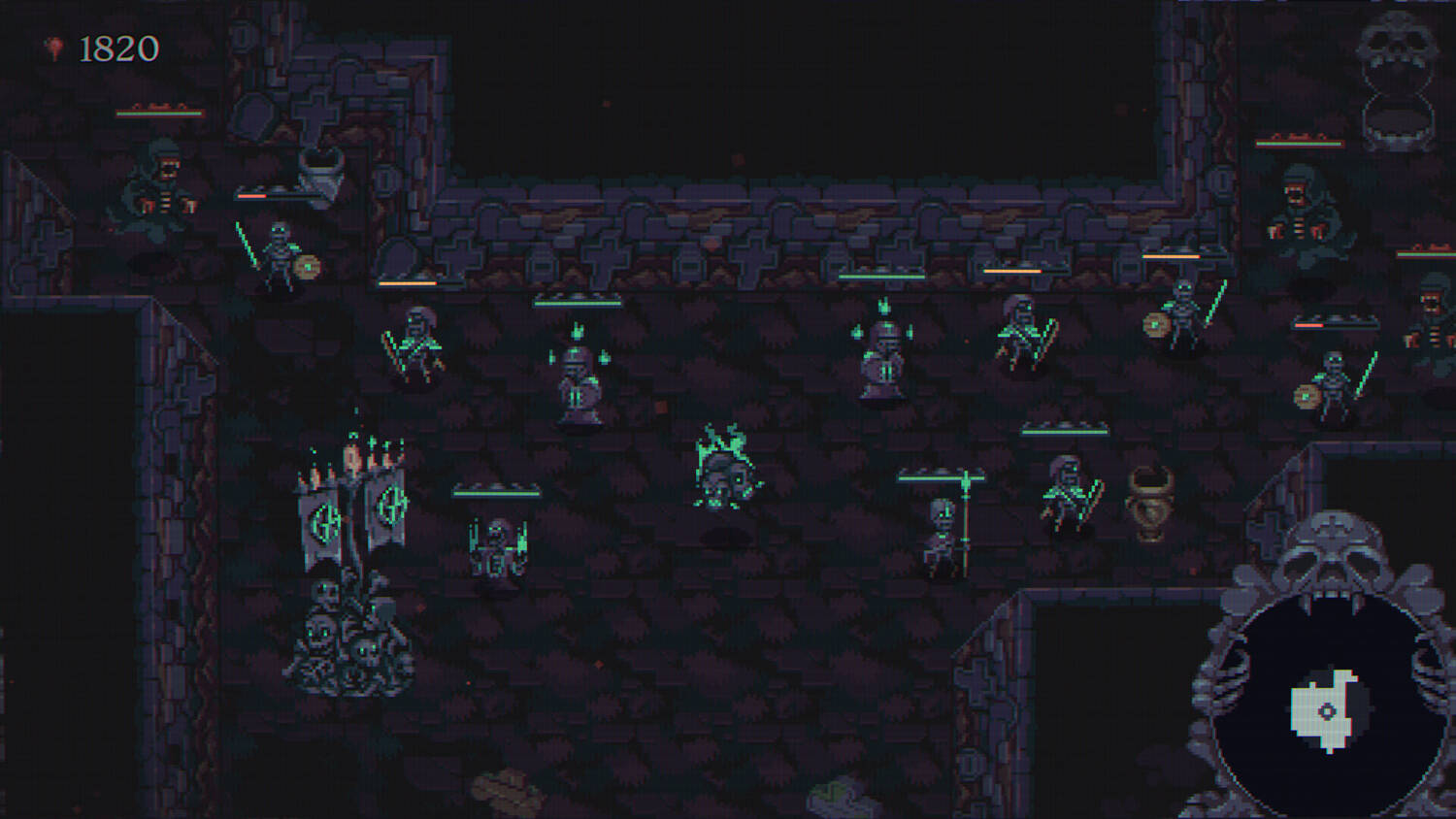Skull Horde — это игра в жанре автобатлер, в которой вы играете за летающего некроманта-черепа. Находите ценную добычу и создавайте мощные билды. Призовите орду скелетов, чтобы сразиться с плотью и костями!