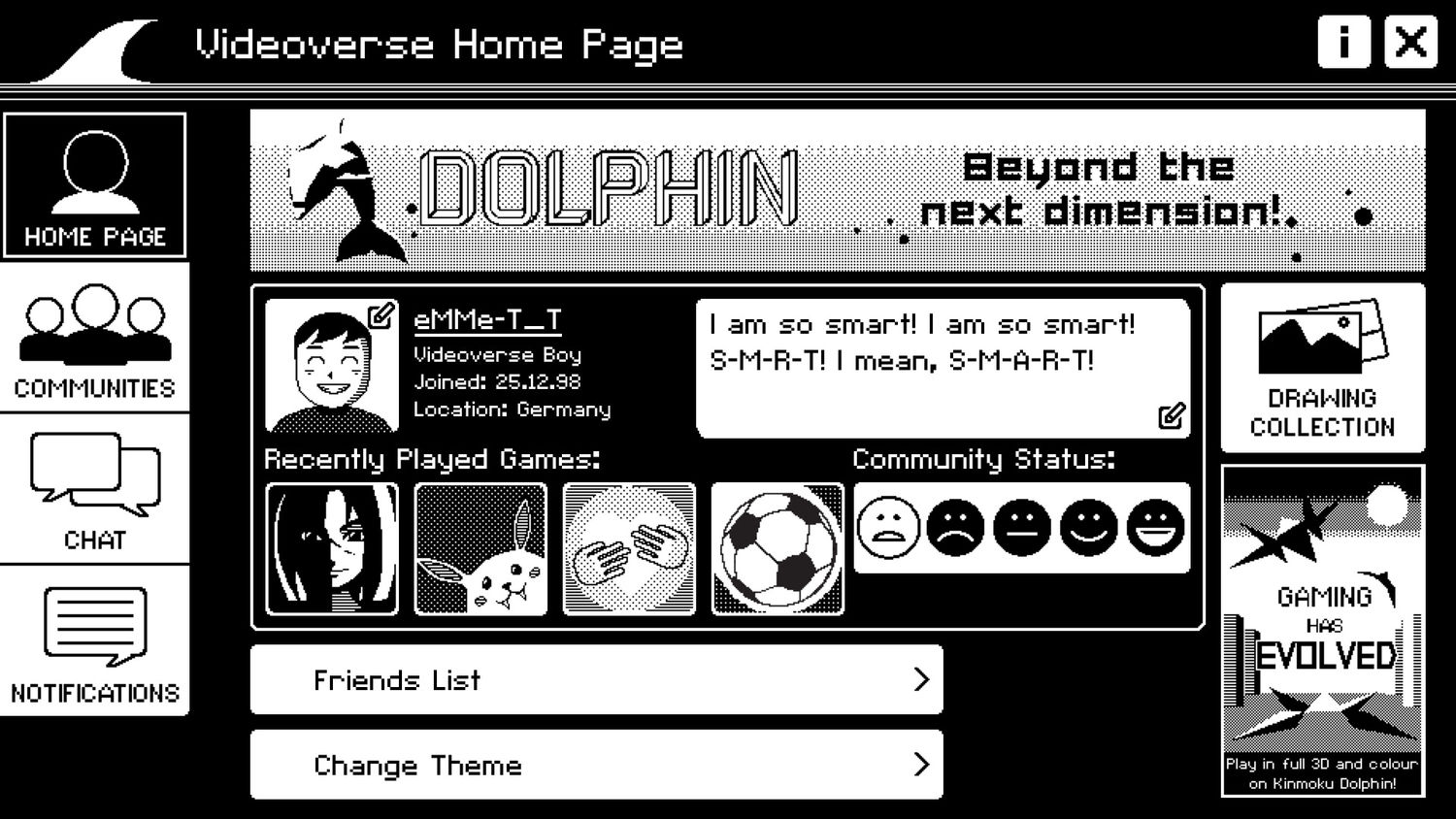 Перенеситесь во времена раннего Интернета и окунитесь в эту вымышленную эпоху видеоигр, когда игровая система "Kinmoku Shark" и ее социальная онлайн-сеть "Videoverse" все еще были популярны…