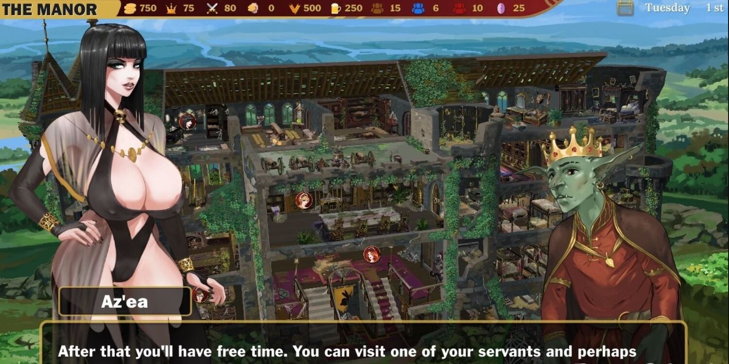 Пока ее заклинание не сработает неправильно и вы не поменяетесь ролями! Теперь вы - тот, кто отдает приказы Аз'эа и штату очаровательных служанок, работающих в поместье Гринвуд. Вам нужно будет управлять своими землями, ремонтировать замок и обучать своих наивных служанок! В игре есть красивые иллюстрации и анимация, талантливые актеры озвучивания и целый гарем сексуальных девушек, которые постепенно привыкнут к тому, что их хозяином является гоблин...