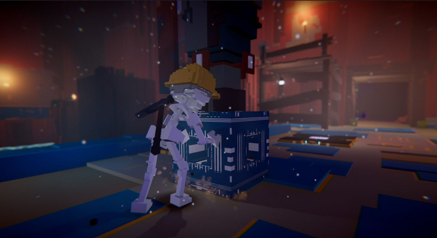 Кинематографичный воксельный мир. DE-EXIT сочетает минимализм воксельной графики и чистых текстур с чертами кинематографа: реалистичными визуальными эффектами и анимацией захвата движения.