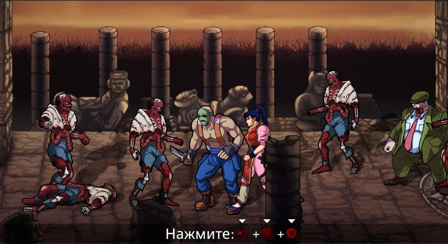 Night Slashers — это захватывающая игра в жанре beat 'em up, действие которой происходит в кошмарном мире, наполненном кровожадными существами и невообразимыми ужасами. Приготовьтесь побывать в роли одного из уникальных героев, сражающихся с полчищами сверхъестественных врагов и ужасающих монстров. В Night Slashers вы не просто боретесь за выживание: вы сражаетесь, чтобы спасти мир от сверхъестественного апокалипсиса. Присоединяйтесь к борьбе, ощутите адреналин и переживите ужас. Самые темные кошмары ждут вас... Night Slashers — классическая аркада, вышедшая в 1993 году и по сей день остающаяся одной из лучших игр в жанре beat 'em up! Геймплей состоит из семи отдельных этапов, каждый из которых подразделяется на несколько секций. Для прохождения каждого этапа вам нужно перемещаться слева направо, сражаясь с волнами врагов.