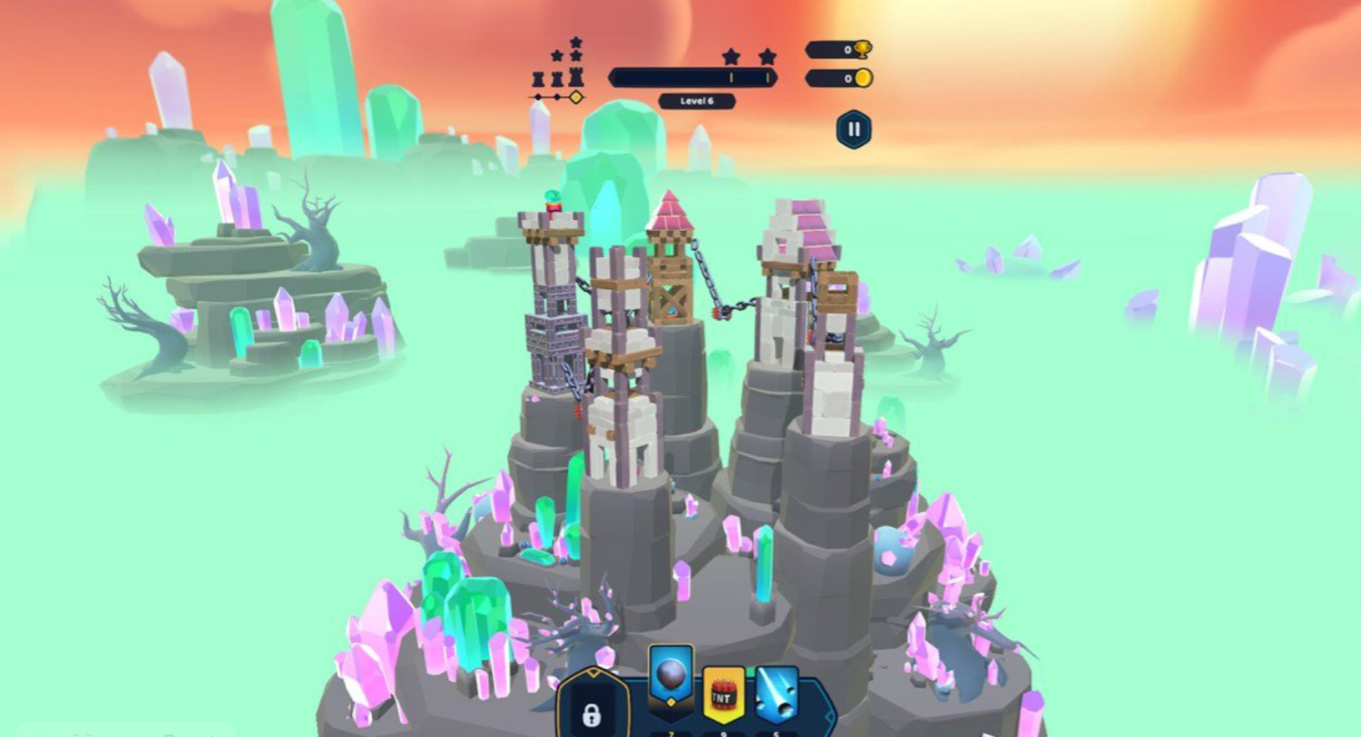 Исследуйте мир Castle Crumble: от густых джунглей до палящих пустынь и умиротворенных прибрежных островов — каждое королевство предлагает новые испытания. Все замки должны пасть. Готовьтесь к завоеванию в Castle Crumble — где каждое обрушение приносит победу!