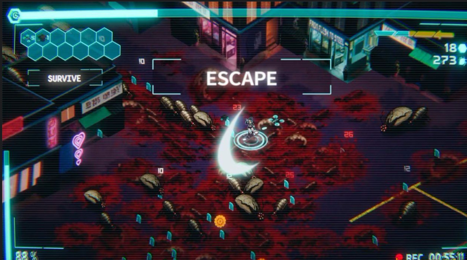 Переживите бесконечные волны инопланетных существ и сокрушите самое сердце заражения! Фай отправляется на секретную миссию на заброшенную планету, зараженную враждебным коллективным разумом. С помощью своей партнёрши Лизз и генерала Эрала она ныряет в глубины заражения, и узнает всю тёмную правду о его происхождении. Помогите найти сердце улья, и положить конец постоянно растущей угрозе!.. Убивайте полчища мерзких жуков и используйте полученный опыт, чтобы укрепить свой арсенал и своё тело с помощью кибернетических чар. Улей адаптируется и посылает более сильных врагов, чтобы встать у вас на пути. Сбивайте их своей армией дронов или рубите их на куски клинком, не дайте коллективному разуму стать сильнее!..