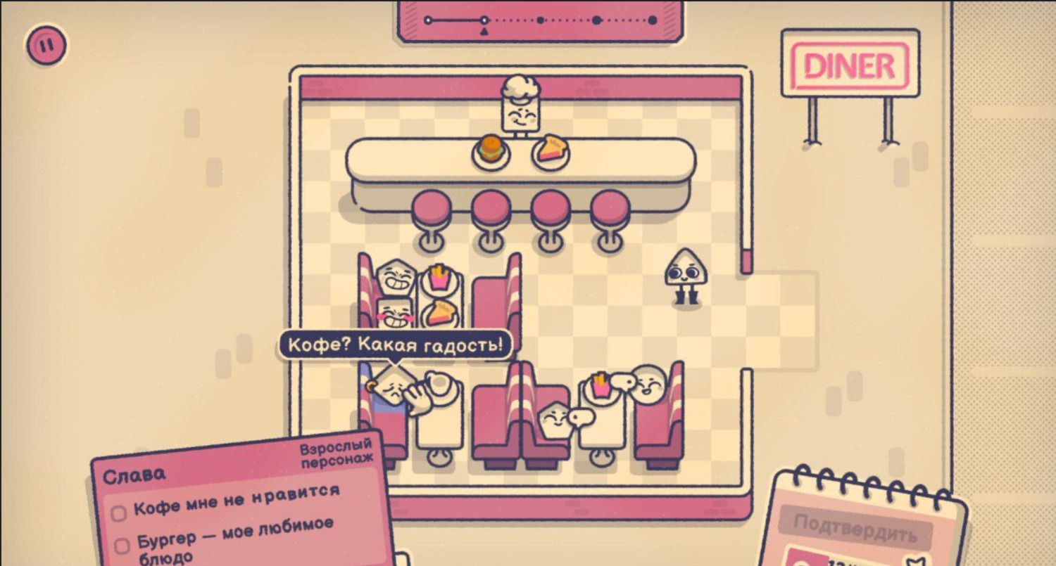 Место у окна или в проходе? Столик или барная стойка? Волк-одиночка или душа компании? Ваша цель в Is This Seat Taken? — организовать группы персонажей в зависимости от их предпочтений. Это уютная и расслабляющая головоломка, где вам предстоит рассадить всех по своим местам.