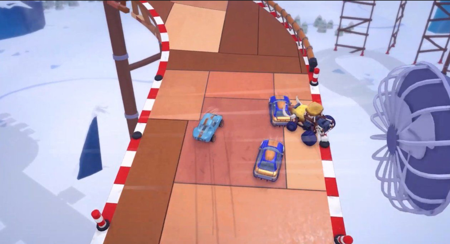 Ускоряйтесь на поворотах, мчите через переезды, дрифтуйте в бешеном ритме и палите из всех стволов в этой современной интерпретации классических многопользовательских гонок с видом сверху. Трассу строите вы! Составьте из фрагментов трассу своей мечты, уклоняйтесь от опасностей, стреляйте и старайтесь не упасть с края, пока мчите к финишу. Готово? Вперед, на следующую составную трассу! Проходите постоянно развивающиеся и все более опасные уровни, пока не определится победитель. А потом начинайте сначала на новой трассе!