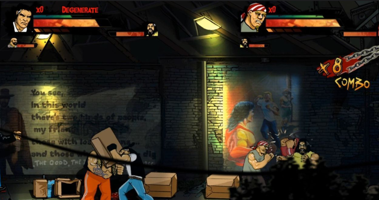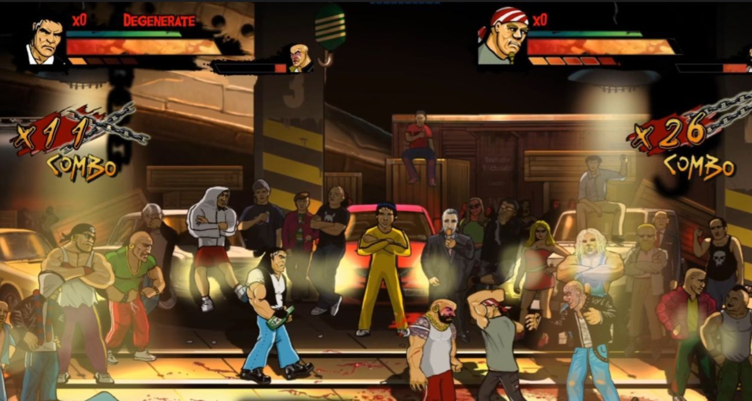 30 000 кадров рисованной анимации старой школы, более 50 различных видов оружия и спец. атак чтобы победить всех 80 разных типов хулиганов и обдолбышей (и никаких рескинов текстур).