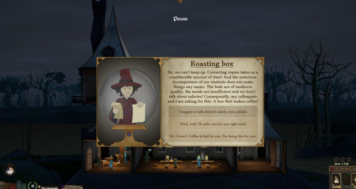 Открываем школу магии! В этой игре вы возьмете на себя роль директора магического университета в красочном мире героической фантастики. Вы сможете построить свою школу, управлять своим бюджетом, нанимать учителей, превратить его в академию черной магии с лучшими профессорами некромантии и демонологии или место в гармонии с природой для обучения друидов и шаманов.