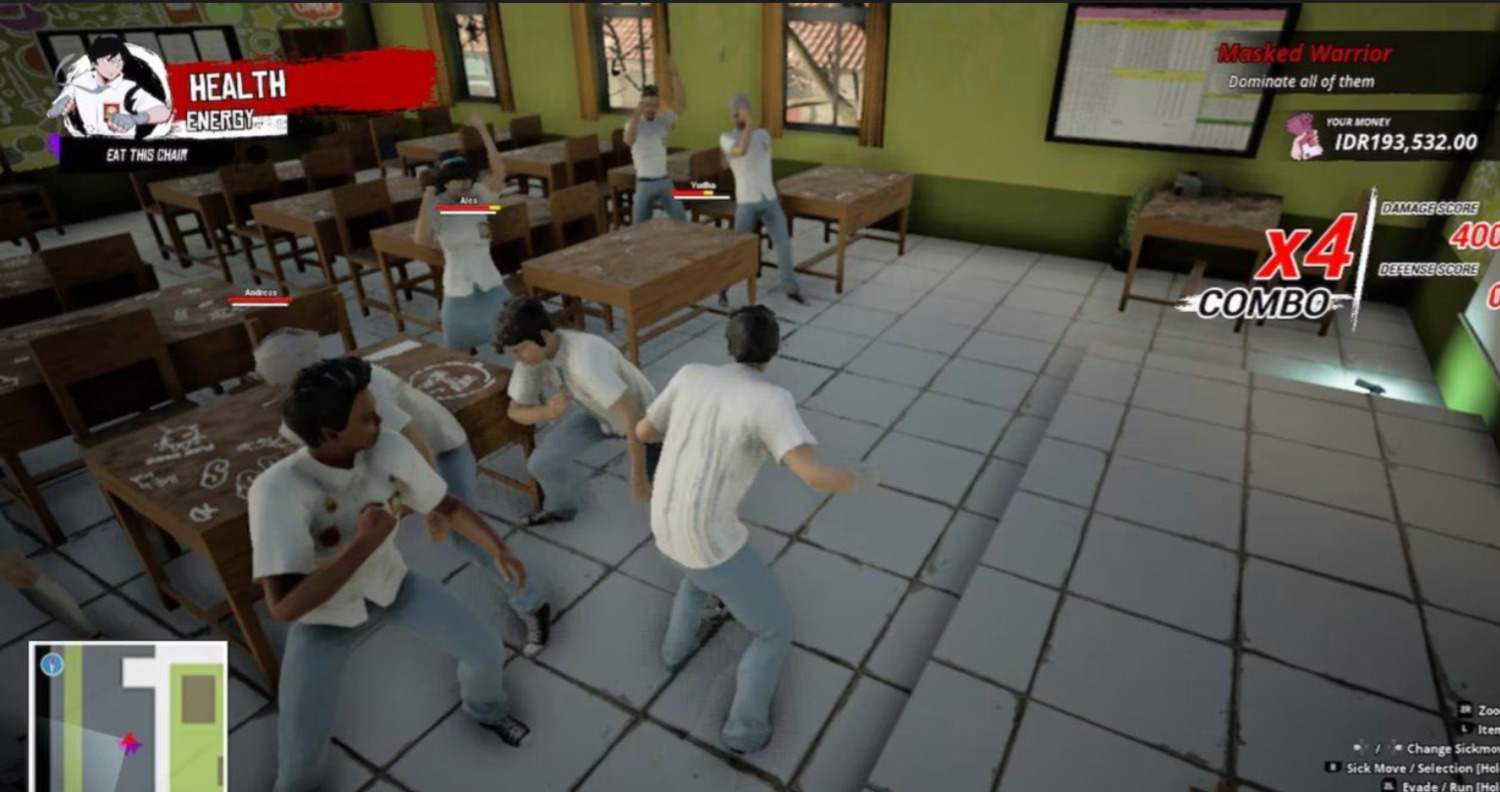 Вдохновлённая жанром драк, это в первую очередь отточенные крышесносные бои на величайшей в Индонезии арене для подростков. Бейте руками и ногами, бейте наотмашь, бейте изо всех сил — у Буди в арсенале более 30 легендарных ударов, используйте их все!