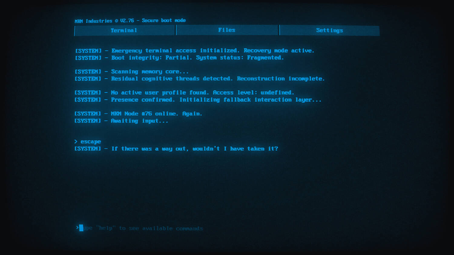Исследуйте заброшенный объект в этом увлекательном приключении на терминале. Открывайте скрытые файлы, решайте текстовые головоломки и собирайте воедино разрозненный искусственный интеллект, раскрывая правду о неудавшемся спасении и похороненном прошлом в этой холодной, атмосферной тайне.