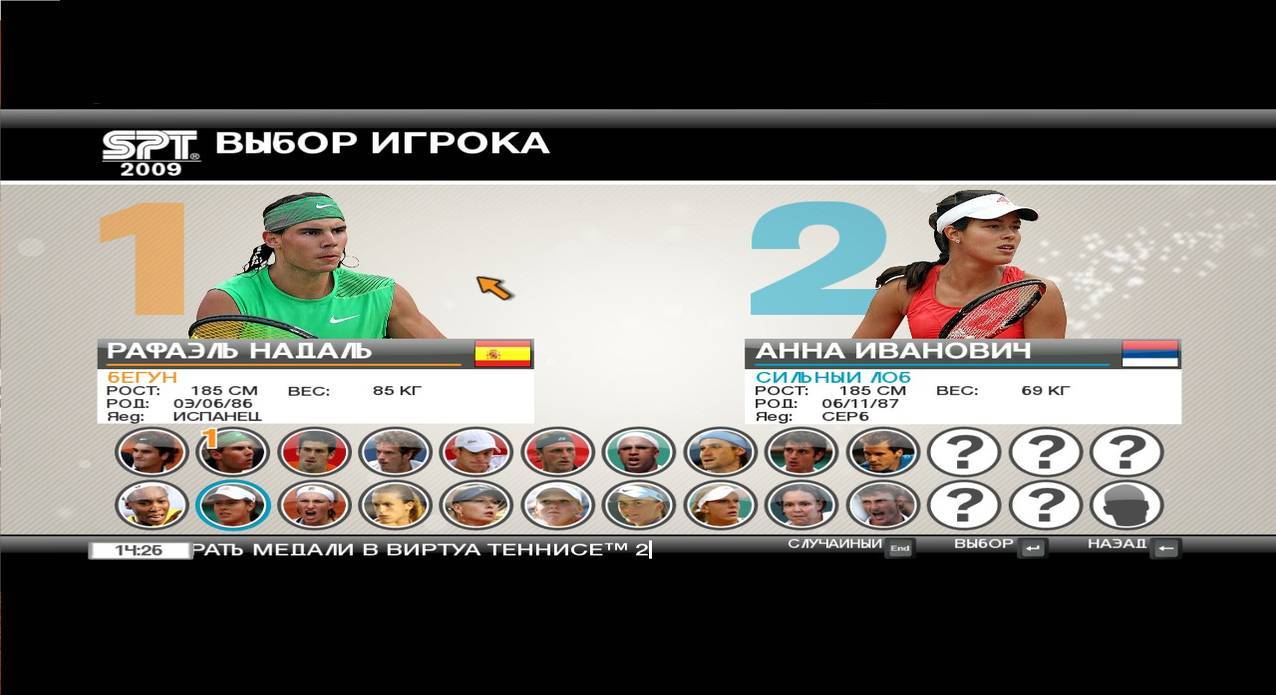 Virtua Tennis 2009 открывает путь в мир большого тенниса. Вы сможете участвовать в легендарных матчах и противостоять на корте лучшим теннисистам планеты. Играйте за Рафаэля Надаля или Роджера Федерера, сразитесь от лица Марии Шараповой с Венус Вильямс. В Virtua Tennis 2009 нашлось место и новым игрокам. Например, Энди Маррею, занимающему четвертую строчку в списке лучших теннисистов-мужчин, и Ане Иванович, чемпионке French Open среди женщин. Вы сможете лично принять участие в ответственных соревнованиях, в том числе в Кубке Дэвиса и в мировом турнире, где в бескомпромиссной борьбе сойдутся двадцать лучших теннисистов планеты. Наряду с серьезными соревнованиями в Virtua Tennis 2009 представлено 12 мини-игр, которые помогут отточить необходимые для победы спортивные навыки. Правдоподобная анимация и высокоточное управление позволят вам перешагнуть границу реальности и перенестись на ту сторону экрана, ощутив себя настоящим теннисистом на залитом солнцем корте.