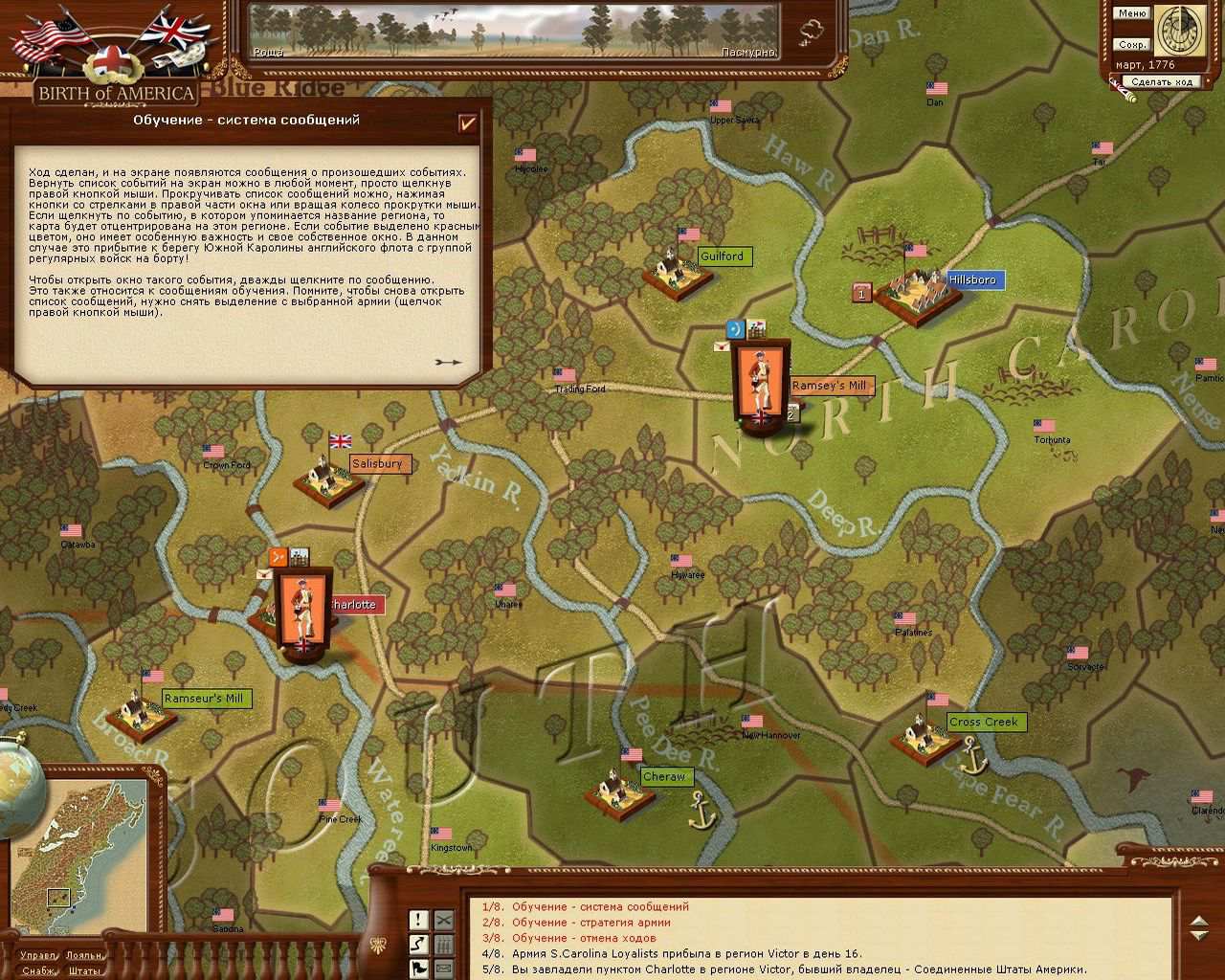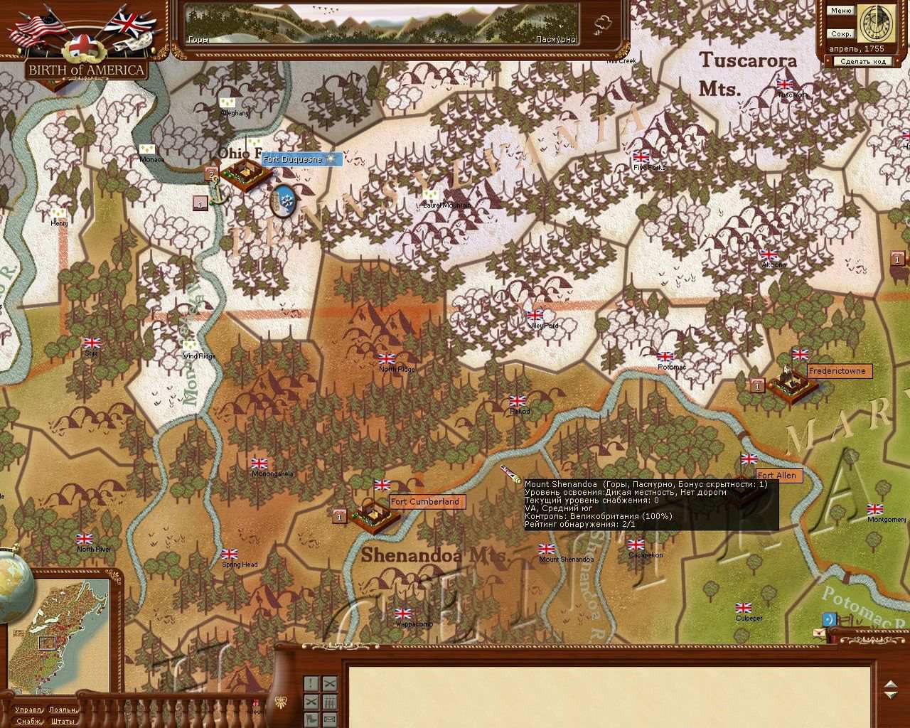 Новая игра от создателя знаменитой "Europa Universalis". На сей раз в жанре пошаговой стратегии воссозданы ратные подвиги колонизаторов Америки. Игровая хронология охватывает исторические военные кампании Британии и Франции, а также борьбу за независимость США. Боевые реалии освоения Нового Света достоверно отражены стратегически точной концепцией. Армии представлены фишками на глобальной карте североамериканского побережья. Ваша цель - тотальный контроль над всей территорией. Но рассчитывать на лёгкую прогулку не стоит. Войска гибнут от голода, холода, долгих переходов и неохотно идут под командование не знатного военачальника. Именно такой войну видят высокие главнокомандующие!