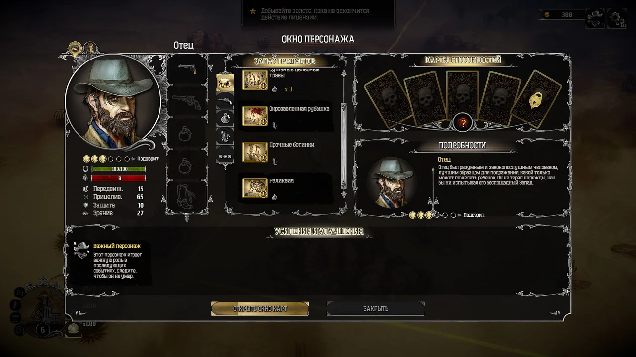 Это Дикий Запад, какого вы еще не видели. Трагическое стечение обстоятельств заставляет героя встать на путь мести и хаоса. Он не пощадит тех, кто был жесток с ним и его близкими. Следуйте за Уорреном в самые темные глубины человеческой души и постарайтесь выжить в мире непростых выборов и жестоких последствий. Смерть - постоянный житель этого мира, а от сделок с силами, непостижимыми для человеческого разума, освободиться почти невозможно. Сражайтесь и выживайте в 8 уникальных сценариях и побеждайте в 40 походовых боевых миссиях. Путешествуя по игровому миру, вы встретите немало красочных игровых персонажей, чьи судьбы замысловато переплетаются с вашей. Вместе вам предстоит принимать решения и раскрывать планы древних темных сил. У сложного сюжета может быть несколько концовок в зависимости от того, какие выборы вы совершали в игре.