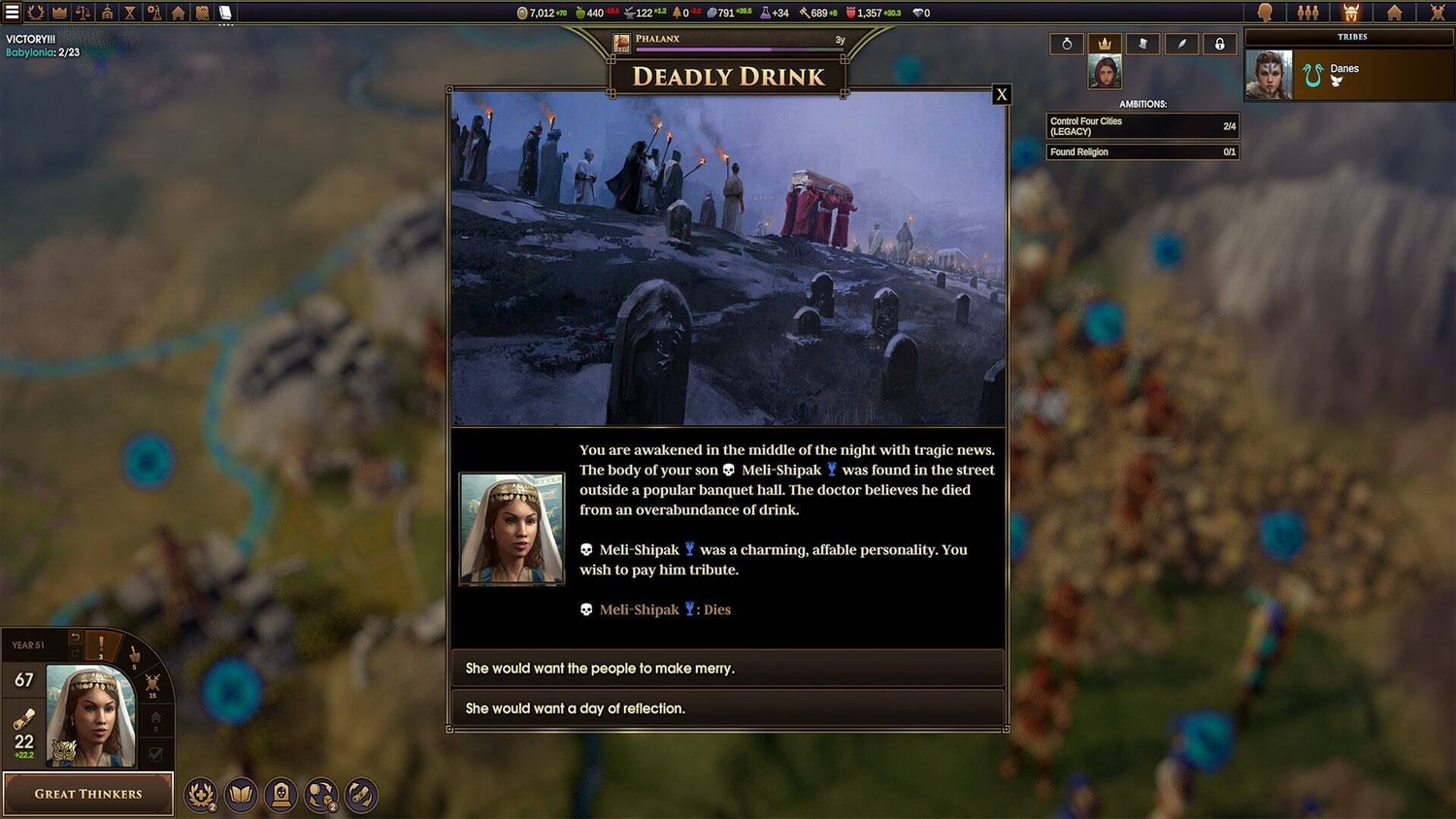 Престолонаследие. Каждый ход в игре Old World - это год жизни правителя. И каждый год на счету, ведь все правители смертны. Нужно успеть обзавестись семьёй и воспитать преемника, чтобы тот унаследовал престол. А когда правитель покинет этот мир, вступивший на трон наследник выберет новую амбицию, чтобы заявить о себе.