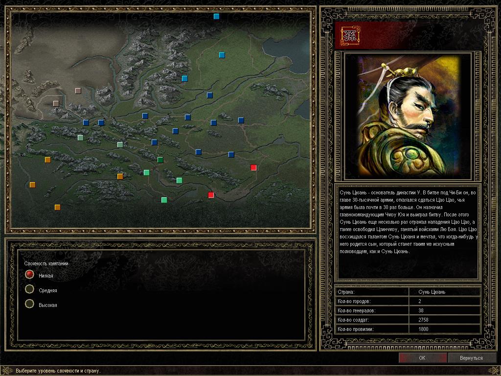 Добро пожаловать на масштабную войну! В конце II - начале III века н.э. на территории Китая шла кровавая борьба за власть. На полях сражений сходились огромные пешие и конные армии. Тысячи воинов - копейщики, лучинки, мечники - шли в бой за своих повелителей. Ваша судьба - объединить провинции в одну великую империю! Вам предстоит вести переговоры и заключать династические браки, отправлять шпионов во вражеские города и брать штурмом непокорные крепости!